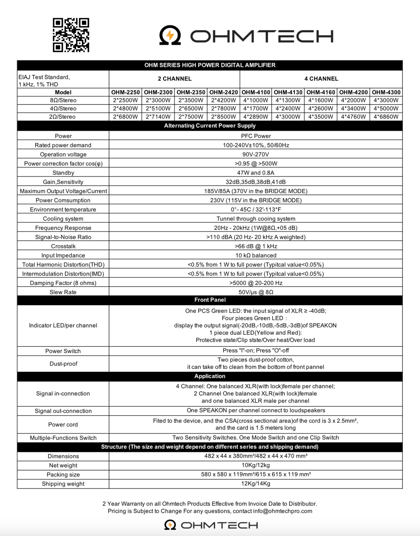 DP-F amps are also stable down to 2 Ohms. This allows for multiple 8 Ω or 16 Ω speakers to be driven with extreme power.