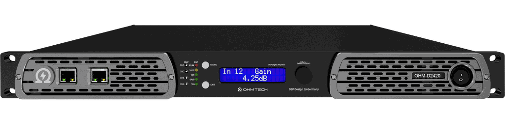 DP-F amps are also stable down to 2 Ohms. This allows for multiple 8 Ω or 16 Ω speakers to be driven with extreme power.