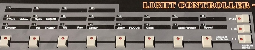 | Có tới 200 nhóm. Chỉnh sửa 210 đặt trước, gồm màu khác nhau, gobo và vị trí được điều khiển bằng nút đặt trước x 7 trang |
