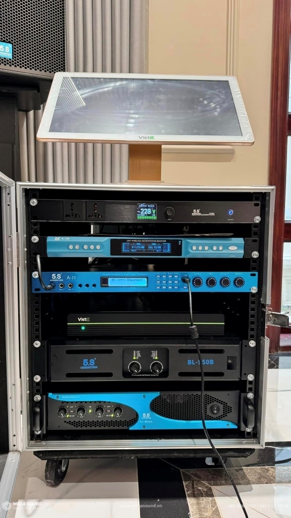 - Cục đẩy công suất (Main Power Amplifier) và Vang số (Digital Processor/Mixer Digital): Đây là sự kết hợp chuyên nghiệp hơn, thường thấy ở các dàn karaoke gia đình cao cấp hoặc phòng karaoke kinh doanh. Cục đẩy chuyên trách nhiệm vụ khuếch đại âm thanh cho loa với công suất lớn, trong khi vang số (hay còn gọi là Mixer kỹ thuật số) đảm nhiệm toàn bộ việc xử lý tín hiệu âm thanh đầu vào (micro, nhạc), cân chỉnh tiếng nhạc, tiếng mic, chống hú rít và tạo hiệu ứng vang. Sự kết hợp này mang lại chất lượng âm thanh vượt trội, khả năng tùy chỉnh chuyên sâu, chống hú hiệu quả hơn.