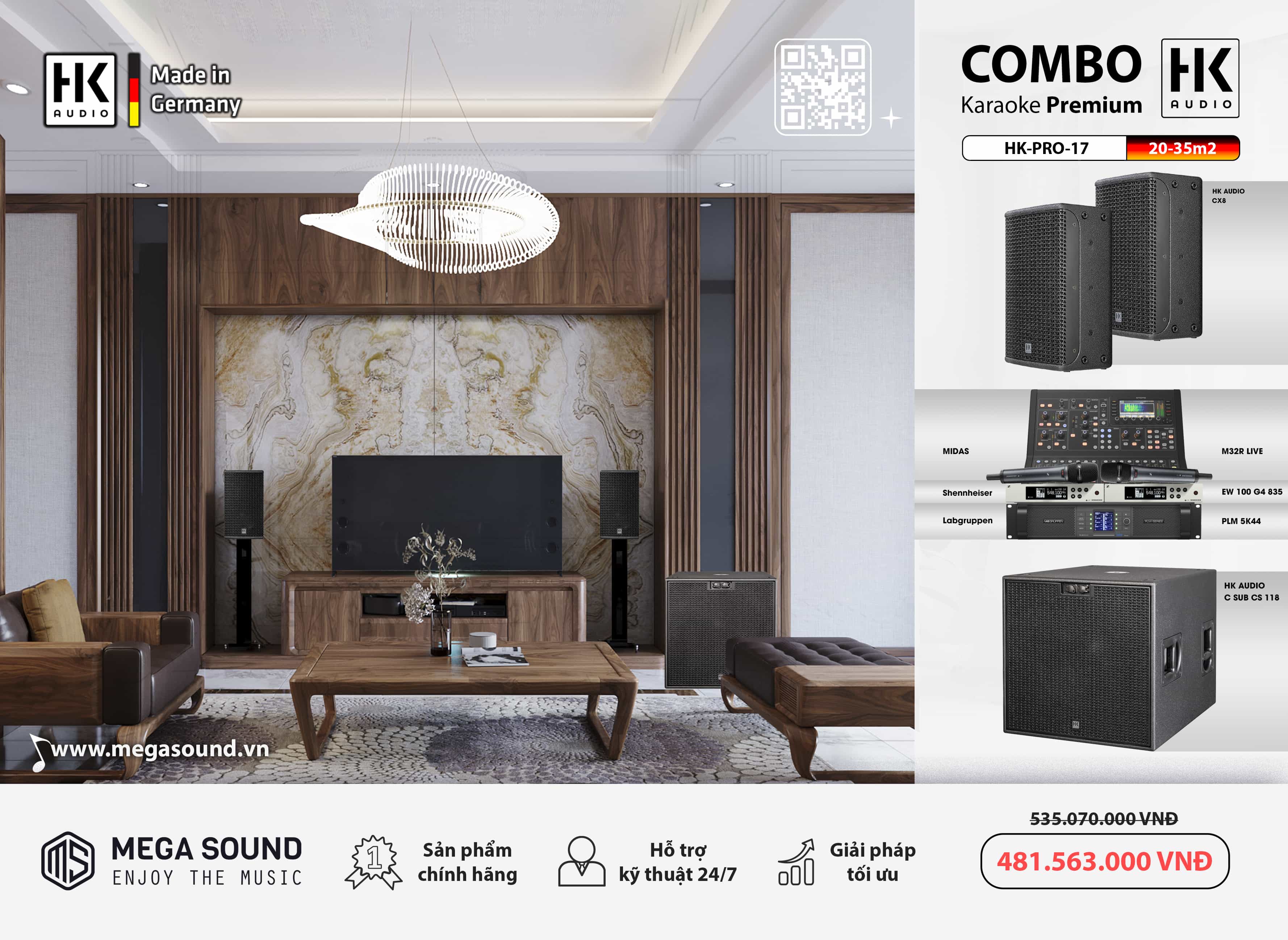 Không gian sang trọng không thể thiếu sản phẩm âm thanh cao cấp. MegaSound hiện là nhà phân phối sản phẩm âm thanh HK Audio được sản xuất tại Đức sẽ đem lại trải nghiệm Karaoke Premium ngay tại gia đình bạn. Hãy tham khảo ngay Dàn karaoke gia đình Premium HK - PRO - 17, được chuyên gia âm thanh của chúng tôi xây dựng từ những thiết bị chính hãng, đáp ứng tối đa mọi nhu cầu giải trí chuyên nghiệp.