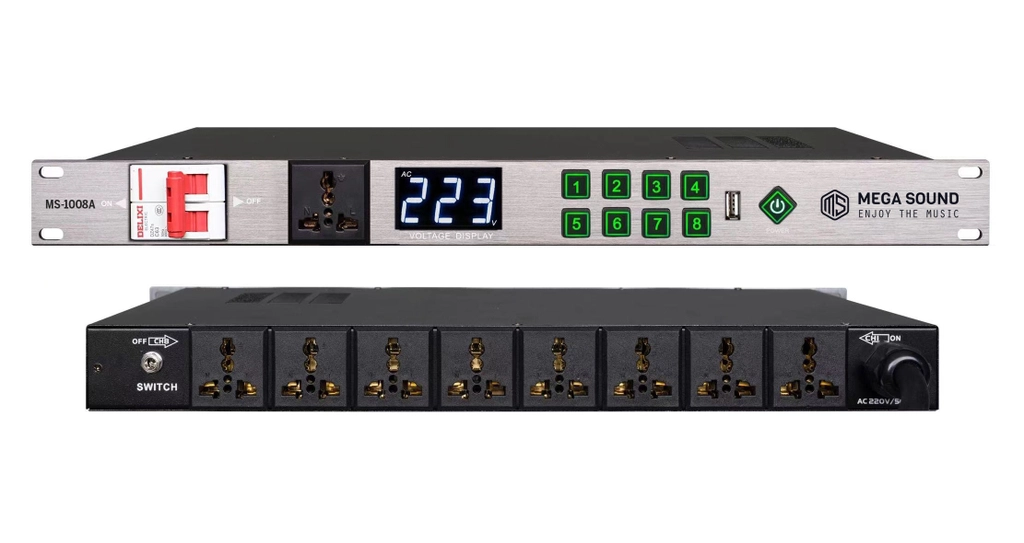 Bộ quản lý nguồn MegaSound MS-1008A sử dụng cho dàn âm thanh giúp đảm bảo bật – tắt các thiết bị điện trong một hệ thống trở nên an toàn (các thiết bị sẽ được bật cách nhau 1s).