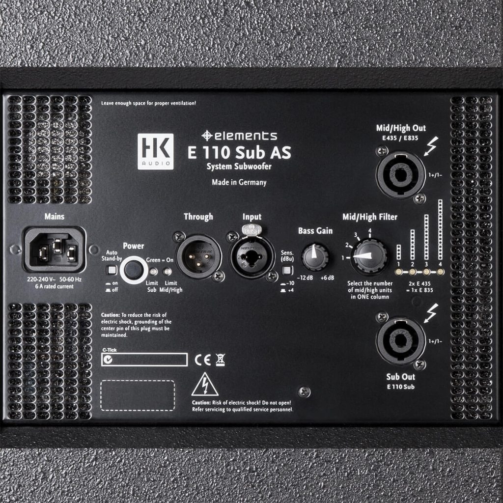 E 110 Sub AS nhỏ gọn và nhẹ. Được trang bị hai bộ khuếch đại công suất tích hợp với công suất 600 watt mỗi bộ, nó cung cấp năng lượng cần thiết cần thiết cho việc mở rộng hệ thống. Điều đó làm cho loa siêu trầm của hệ thống này trở thành lựa chọn lý tưởng nếu bạn đang tìm kiếm sự mở rộng linh hoạt cho hệ thống Elements PA. Ngoài ra, E 110 AS có thể được sử dụng để điều khiển E 110 Sub thụ động và tối đa hai thiết bị trung / cao E835 với tổng cộng 16 loa toàn dải.