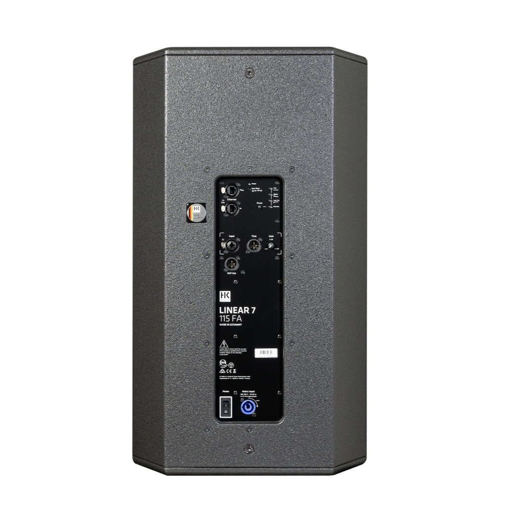 Ổ cắm PowerCon kết nối loa với nguồn điện. Loa siêu trầm L7 118 Sub A cung cấp một ổ cắm PowerCon thứ hai để đi dây điện thanh lịch trong hệ thống. Bộ cấp nguồn dải rộng hiện đại của LINEAR 7 loa có thể hoạt động trên tất cả các điện áp từ 90 đến 260 vôn và ổn định đáng tin cậy điện áp nguồn, ngay cả khi hoạt động trên máy phát điện.