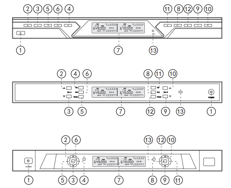 13. Tần số của cửa sổ hồng ngoại: kết hợp với phím "SET", sẽ được trao cho các tham số kênh phát.