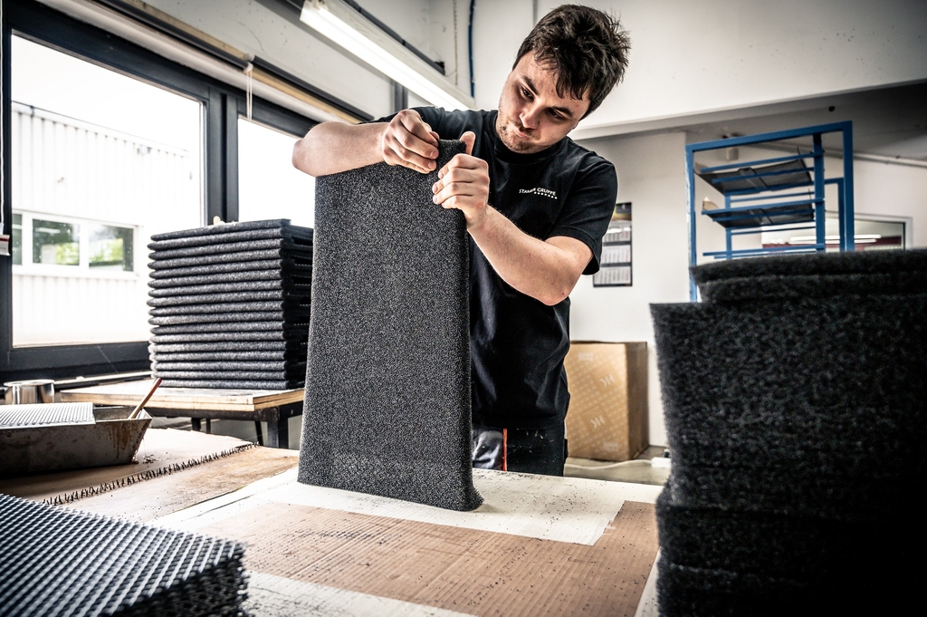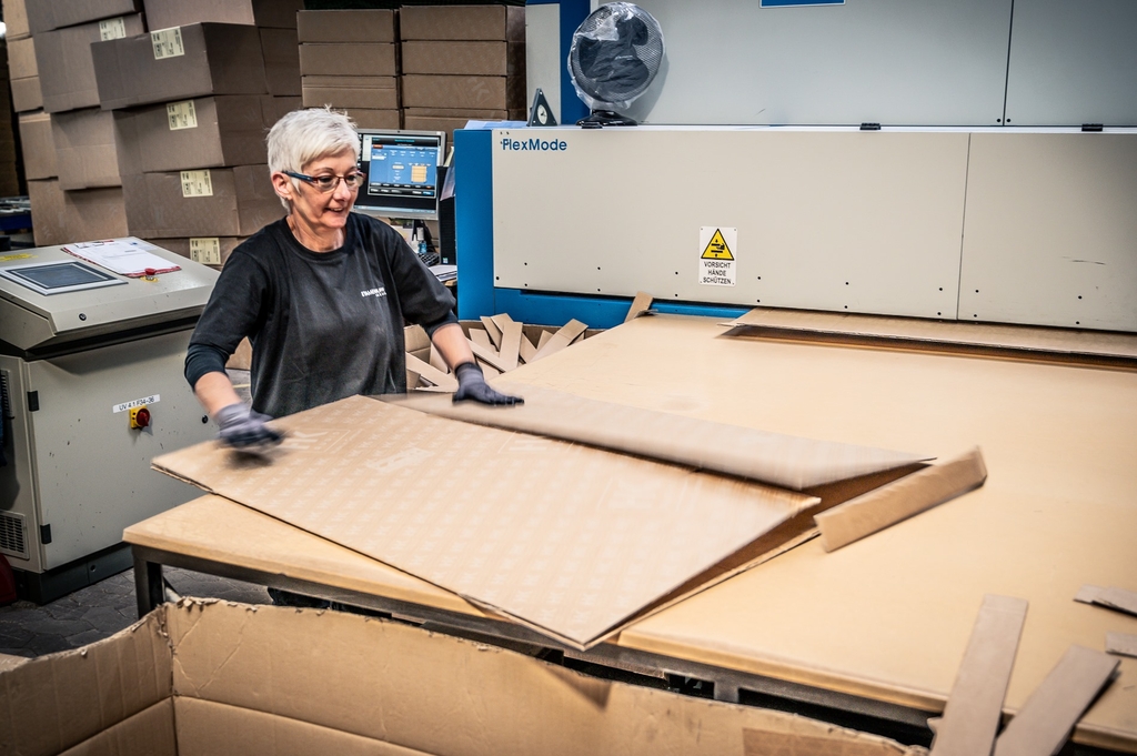 Cuối cùng, họ đi đến dây chuyền đóng gói, nơi chúng tôi làm một hộp tùy chỉnh cho mọi sản phẩm.