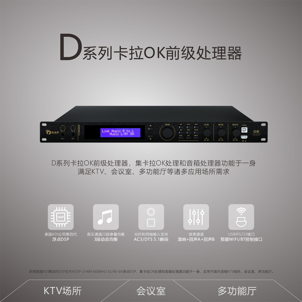 Hỗ trợ giải mã AC3/DTS 5.1, đảm bảo tái tạo âm thanh surround chất lượng cao cho không gian giải trí gia đình hoặc phòng karaoke cao cấp.